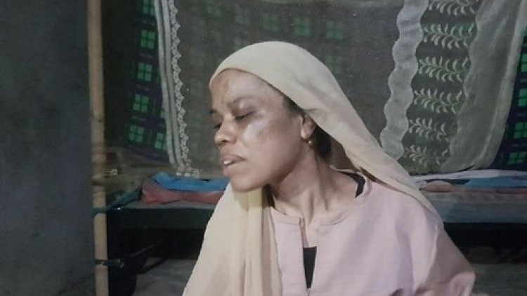 Wajah Eni penuh lebam saat ditemui detikcom di rumahnya di Kampung Bojong Bunut, Lebak Wangi, Serang, Banten. Dia baru pulang tiba di rumah pada Selasa (5/2).